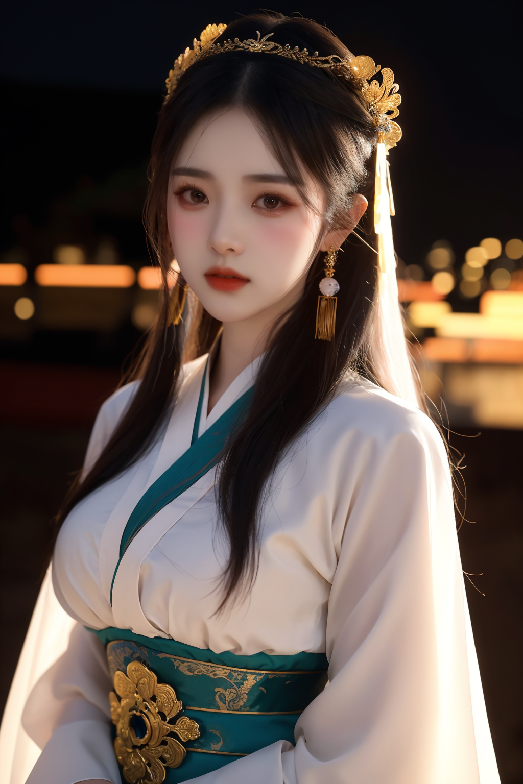 wuxia heroine,beautiful Chinese woman in traditional Samuri costume,temple background,detailed,realistic,detailed face,pov,cinematic lighting,dark theme,headdress,earrings,hanfu,sheer fabric,giant breasts, <lora:yuyu鱼鱼:0.6>,<lora:fengchangé£è£³_1.5:0.3>,rim light,night,<lora:ccmakeupå¦å®¹:0.7>,