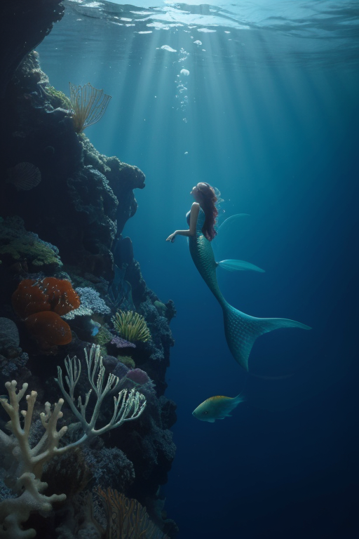 hyper realistic,lifelike texture,dramatic lighting,Nikon RAW photo,8k,Fujifilm XT3,masterpiece,best quality,realistic,(photorealistic:1.4),ultra detailed,,fantasy,((The picture is bright)),(in the clear sea:1.2), 1girl,((mermaid:1.2)),floating hair,, (There are many tropical fish around), Swim from the deep sea to the surface, Photographed from bottom to top,