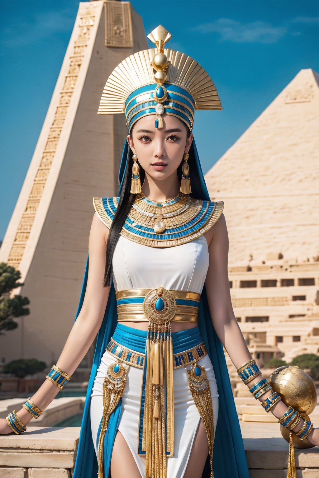 Cleopatra-HXZ, 1girl, solo, jewelry, earrings, looking at viewer,Auditorium,Skyscraper,<lora:Cleopatra-HXZ:0.7>