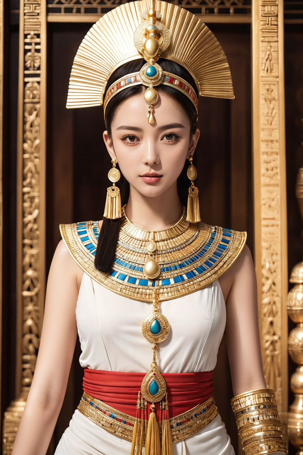 Cleopatra-HXZ, 1girl, solo, jewelry, earrings, looking at viewer,fushimi_inari,in_main_street,<lora:Cleopatra-HXZ:0.7>
