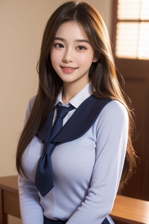 best quality, masterpiece, (realistic, photo-realistic:1.37), amazing, finely detail, incredibly absurdres, big filesize, ultra-detailed, highres, extremely detailed CG unity 8k wallpaper, A beautiful young woman. (innocent cute young face), thin, looking at viewer, ((young)), smile, (tight school uniform), school student, big breast
