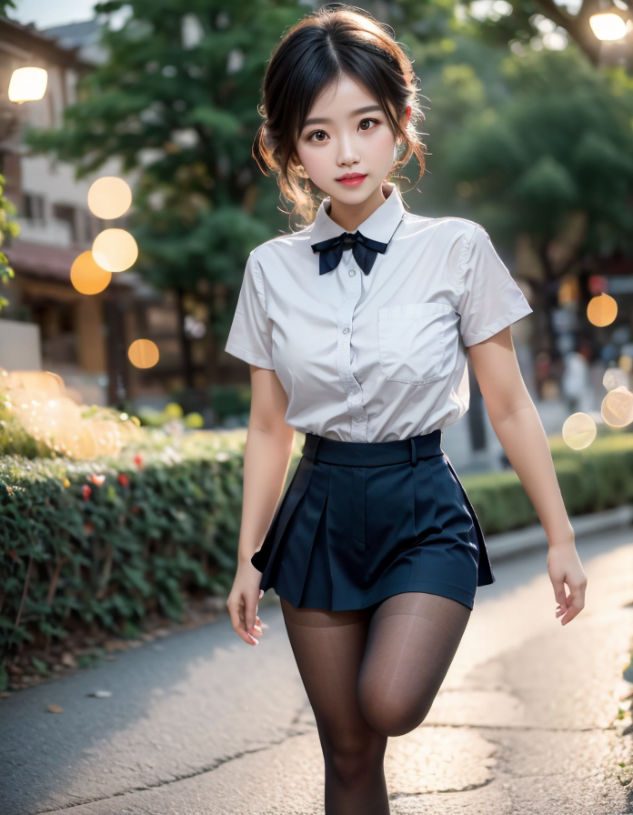 (amputee:1.2),(full body:1.2), solo, (smiling:0.8), girl,1girl, (solo:1.4), thin, small breasts, chest up, school uniform,white shirt,short sleeves, (black pantyhouse:1.2, black tights), bowtie,lips,blue skhind back,shirt tucked in, (8k, best quality, masterpiece:1.2), (realistic, photo-realistic:1.37),front lighting,(bokeh:1.2),ultra high res, professional lighting, physically-based rendering, <lora:amputeev01-40:0.8>