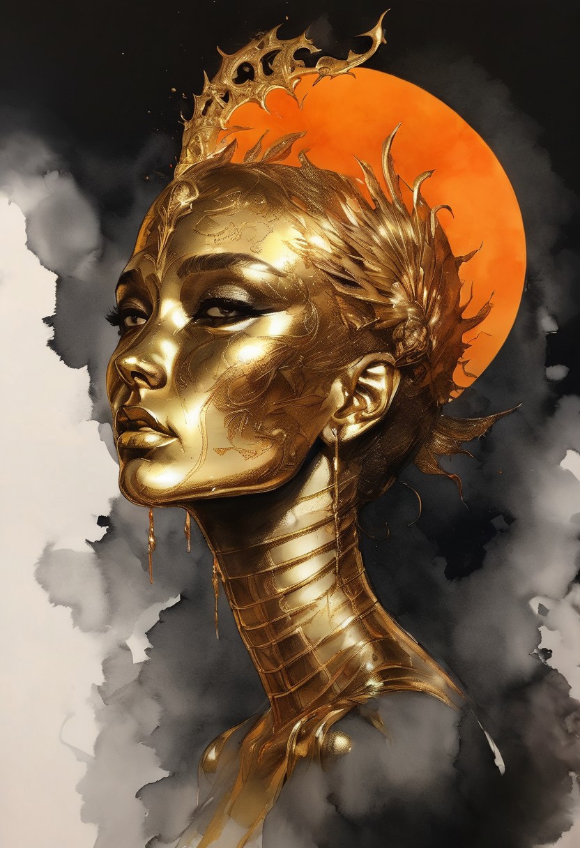 Silhouette Art, breathtaking ( absurdres divine aesthetic FaeTastic extravaganza alcohol ink sketch). amazing, fine, detailed, masterpiece, lovely, charming, awe-inspiring, radiant, magnificent. (all dark hues and fine vibrant orange glowing smoldering accent and shiny gold color scheme:1.02). glossy. <lora:InkArtXL_1.2:0.4> <lora:FaeTastic:0.35> . award-winning, professional, highly detailed . extremely high-resolution details, photographic, realism pushed to extreme, fine texture, incredibly lifelike, high contrast, well defined .
