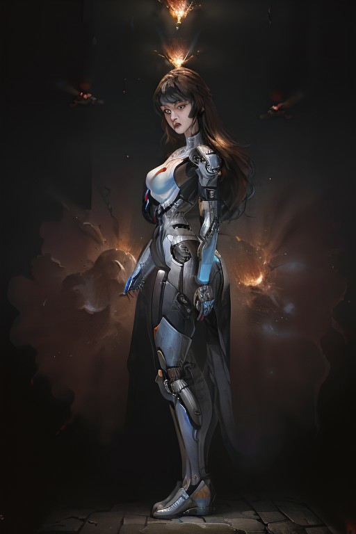 looking at viewer,detailed background,Cinematic Lighting,film grain,score_9,score_8_up,score_7_up,masterpiece,best quality,highly detailed, <lora:(增强)sdxl_lightning_8step_lora:1>,<lora:glowneon_xl_v1:1>,glowing,<lora:add_details_xl:1>,<lora:hand 4:0.8>,hand person,Expressiveh,,colorful, full body, 1girl, Tomie Kawakami, another face.,,long hair,spine,breasts,brown hair,huge breasts,mechanical parts,science fiction,android,cyborg,brown eyes, white bodysuit, black hair,gradient,lips,joints,robot joints,closed mouth,skin tight,dark skin,dark-skinned female,bangs,mechanical arms,robot,looking at viewer,spaceship, robotic cockpit,<lora:proneXLP:0.4>,,on stomach, standing, front view,