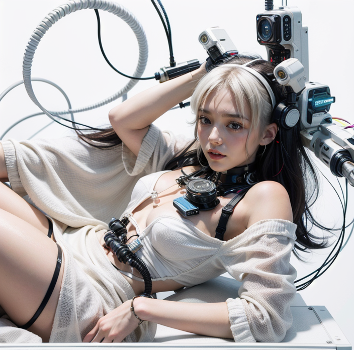 1woman, angry, thick thighs, iridescent, transparent, future, big nipples, gizmo, hologram, LCD screen, computer, gpu, waveform, (wires:1.2), buttons, switches, dials, walkie talkie, radar, IR, pinterest, ferrofluid, steampunk, cyber, (cyberpunk:1.3), perspective, macro, intricate details, beautiful lighting, best quality, masterpiece, ultra highres, photorealistic (white background:1.8) <lora:addDetail.JO09:0.4> <lora:Niji:0.2>