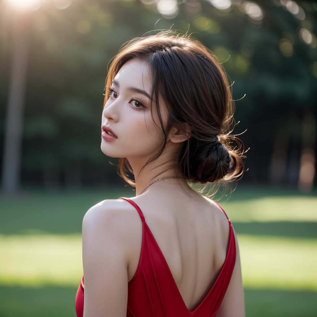 (best quality:1.1), (masterpiece:1.2), (realistic:1.2), (detailed:1.1),masterpiece, 1girl, score_10,score_9, score_8_up, score_7_up, score_6_up, score_5_up, Silhouette Art portrait, breathtaking art drawing portrait, (beautiful charming woman), slender figure, slightly posing, a tight sleek strict dress. bright red backlight illuminates elegant woman's dark dim silhouette, (bright glowing red contour and outline), light only from behind, fully shaded dark dim body, (masterpiece), (realistic), 8k, RAW photo, very wide shot, (film grain, bokeh, blurry foreground), <lora:add_detail:1>