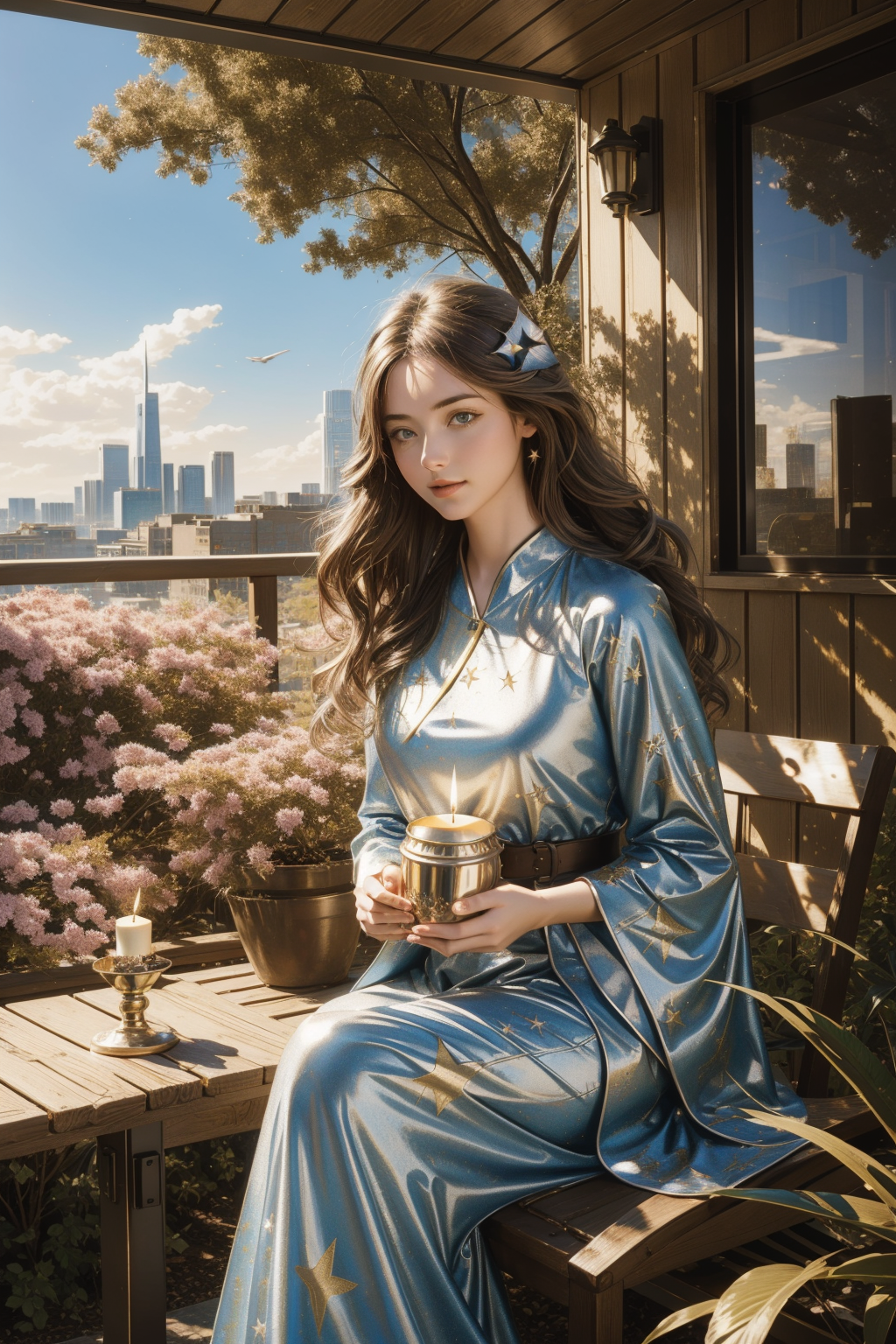 1girl, (designed by Donato Giancola:0.7) and (Mary Heilmann:1.3) and (Alexandre Benois:0.9) and (Liam Sharp:0.8) , detailed art, 8k Metal Statue of a best quality, Biophilic Remarkable ([Chickadee|pot]:1.3) , flora and Bush background, Wavy field with Tree, Stars in the sky, tilt shift, Visual novel, Grim, Hyperpunk, Candle light, Depth of field 270mm, Technicolor, dreamy, caustics, dslr, 8K, cityscape, magical