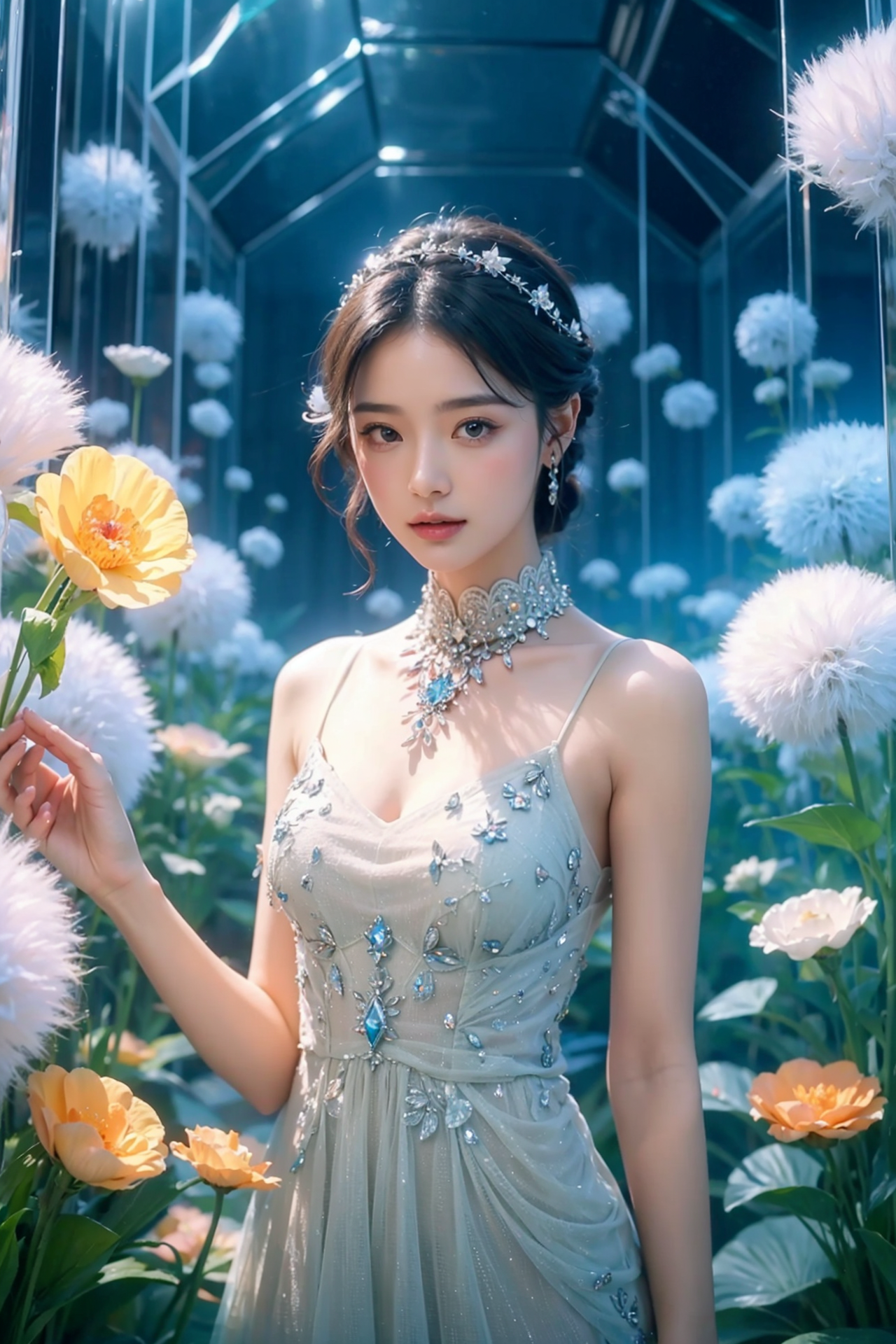 1 girl,Crystal Garden,crystal,crystal element,glass,masterpiece,best quality,finely detail,highres,8k,beautiful and aesthetic,