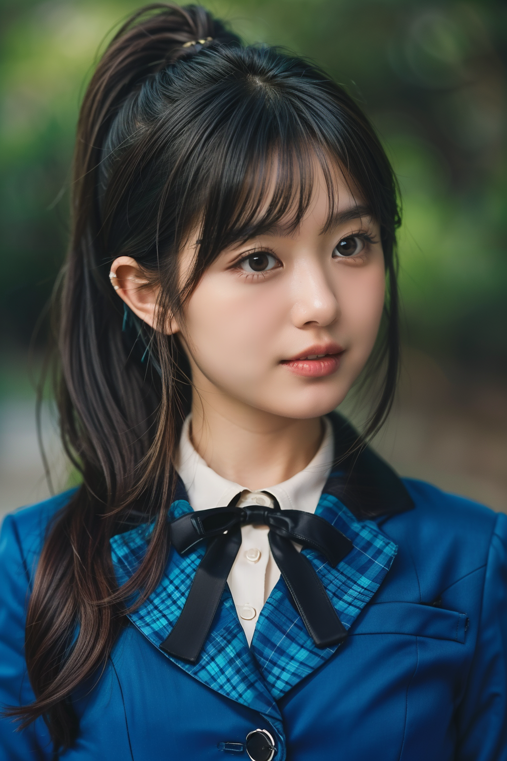 masterpiece,intricate,upper body,depth of field,best quality,1girl,solo,plump,smile,asian,white skin,25y.o,beautiful,black hair,looking away,(wearing 12th single hinatazaka46 seifuku:1.3),black ribbon,(blue blazer:1.1),long sleeves,plaid,collared shirt,uniform,badge,(emblem:1.2),(from left:1.2),<lora:Hinatazaka46_12th_Single_Seifuku:0.9>,in spring,day,nature,on a hill,outdoors,(portrait:1.2),(cinematic light:1.2),(high ponytail:1.2),, RAW photo, subject, (high detailed skin:1.2), 8k uhd, dslr,soft lighting,high quality, film grain, Fujifilm XT3, <lora:epiNoiseoffset_v2-pynoise:1>, highres,huge filesize,HD,highest quality,best quality,highly detailed hair,proportional body,proportional breasts,beautiful breasts,highly detailed skin,goosebumps,visible pores,intricate,masterpiece,ultra high res,photorealistic,depth of field,RAW photo,best quality,realistic,photo-realistic,an extremely delicate and beautiful,CG,finely detail,absurdres,, <lora:add_detail:0.5>,add_detail