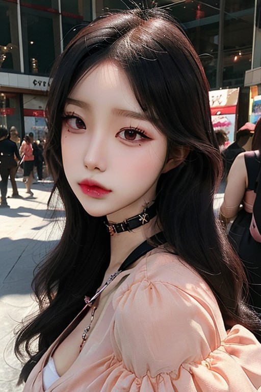 masterpiece, detailed, hd, breathtaking,koreandolllikeness_v15, ulzzang , kpop, 1girl, solo , makeup, eyeleash, eyeshadow, casual black eyeliner, cosplay peach blush,ulzzang beautifull, stunning,