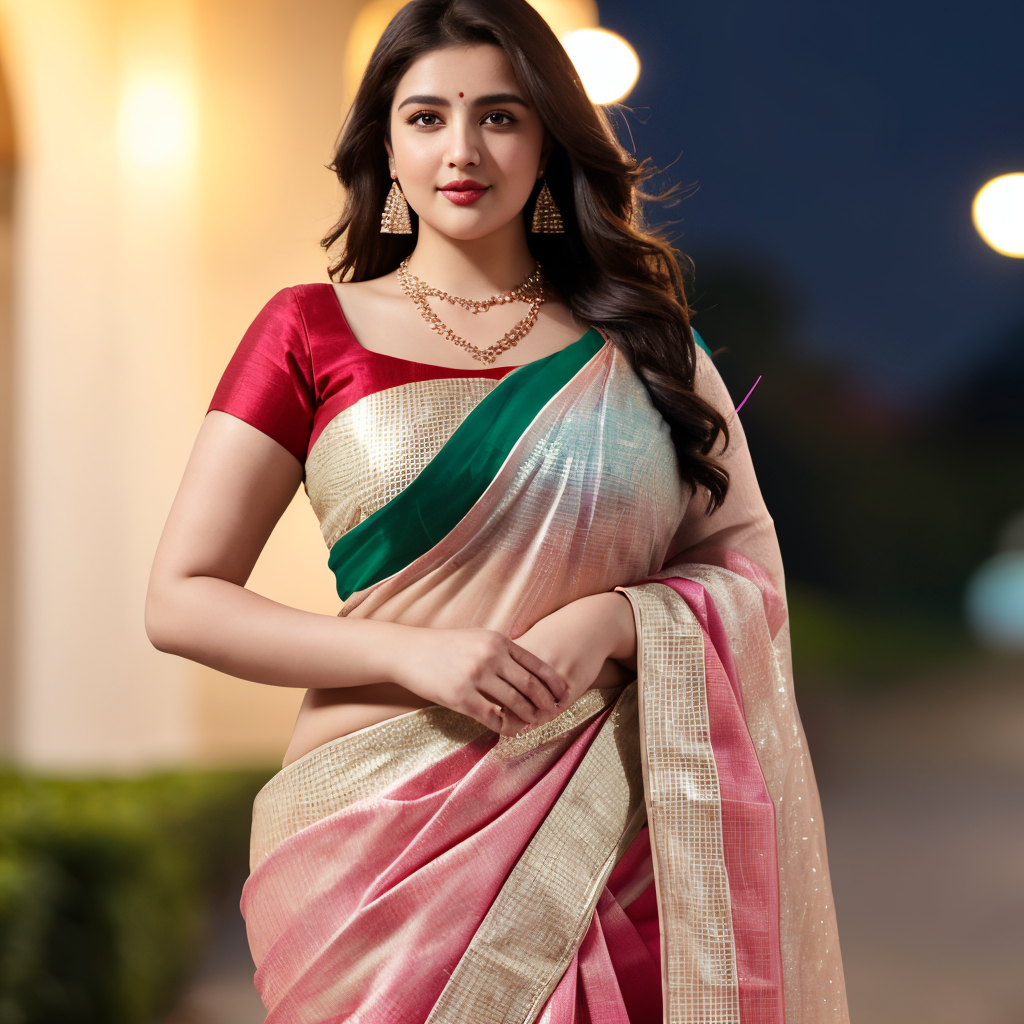 masterpiece, high quality, (professional photo of a beautiful Russian bbw standing woman), curvy, chubby, large breast, wearing a light colorful stripe saree Set,in hill side, diamond necklace, (bokeh), sharp focus, realistic skin texture, photorealistic, ultra hd, sharp details, realism, bigfaketits, bbw,full body <lora:bigfaketitsv2-000020:0.3> <lora:Real BBW V1:0.3>
