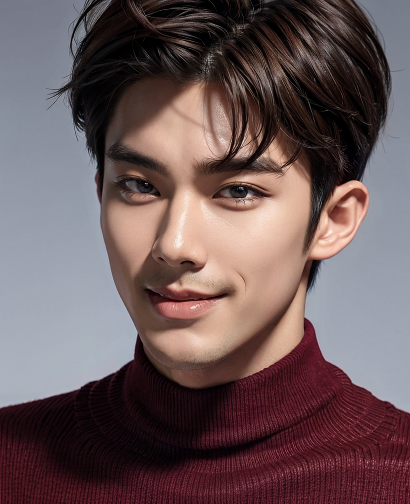 handsome male,25yo,color sweater, asian, extreme_close_up, smile, <lora:Kpop Boy:0.3>, <lora:add_detail:1>,