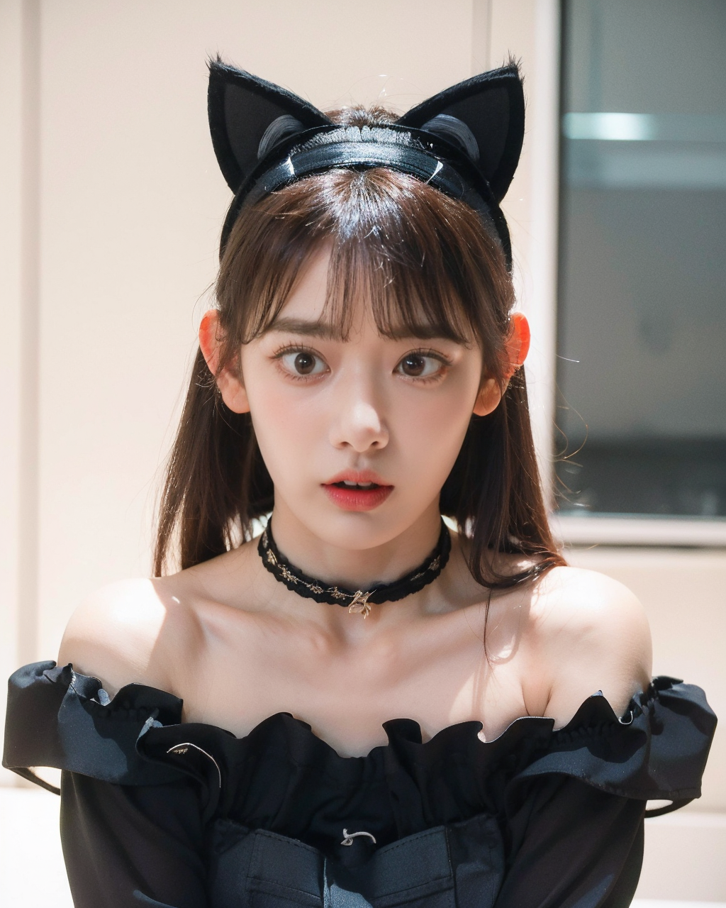 masterpiece, best quality, 1girl, cat ears, choker <lora:SakuraV1:1> Sakura <lora:l_shk_searbd2_sd_64_32:1> shocked expression