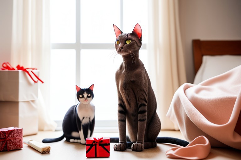 Ultra-realistic photo of a hairless Peterbald cat sitting in a cozy, warmly lit room, crying with tears streaming down its face. The cat has just opened a gift box and is holding a hairbrush delicately in its paws. Its large, tear-filled eyes reflect a deep sadness, as it looks at the gift, feeling the sorrow of being bald. The opened gift box lies beside the cat, surrounded by a soft blanket and a few scattered pieces of wrapping paper. The scene is filled with emotion, conveying the cat's sense of loss and vulnerability